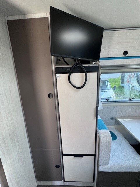 Options : Tv, Antenne satellite automatique, Caméra de recul, Clim moteur, Régulateur de vitesse, Autoradio, Alarme volumétrique, Panneau solaire, Clim de toit, Porte 2 vélos, Store extérieur …